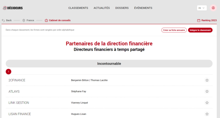 Cette année encore, Atlays figure parmi les Incontournables de la direction financière à temps partagé, selon Décideurs Magazine.